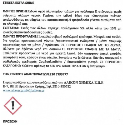 - Το προϊόν χρησιμοποιείται σε πλυντήρια πιάτων ως βοηθητικό εκπλύσεως που περιέχει ειδικά συστατικά για γρήγορο στέγνωμα των πιάτων και των ποτηριών χωρίς κηλίδες και θαμπάδες.
